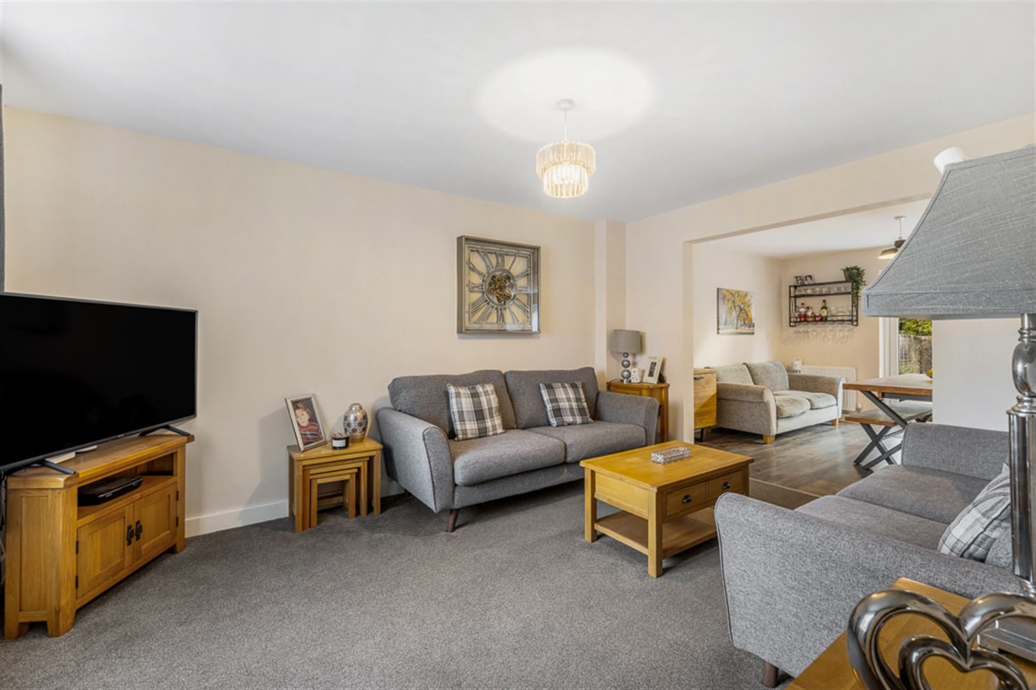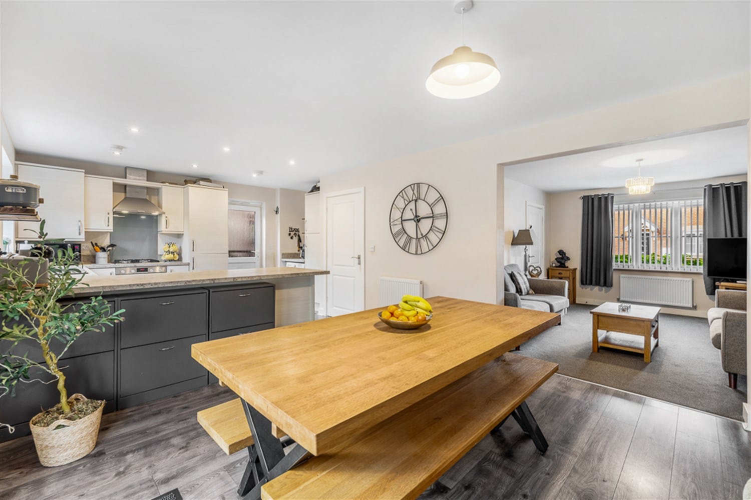 Homely but spacious lounge / living room comprising of a large double glazed window to the front aspect, a double panelled radiator, TV point and open plan into the kitchen diner. This room really is lovely and light and gives a really homely feel to this property.