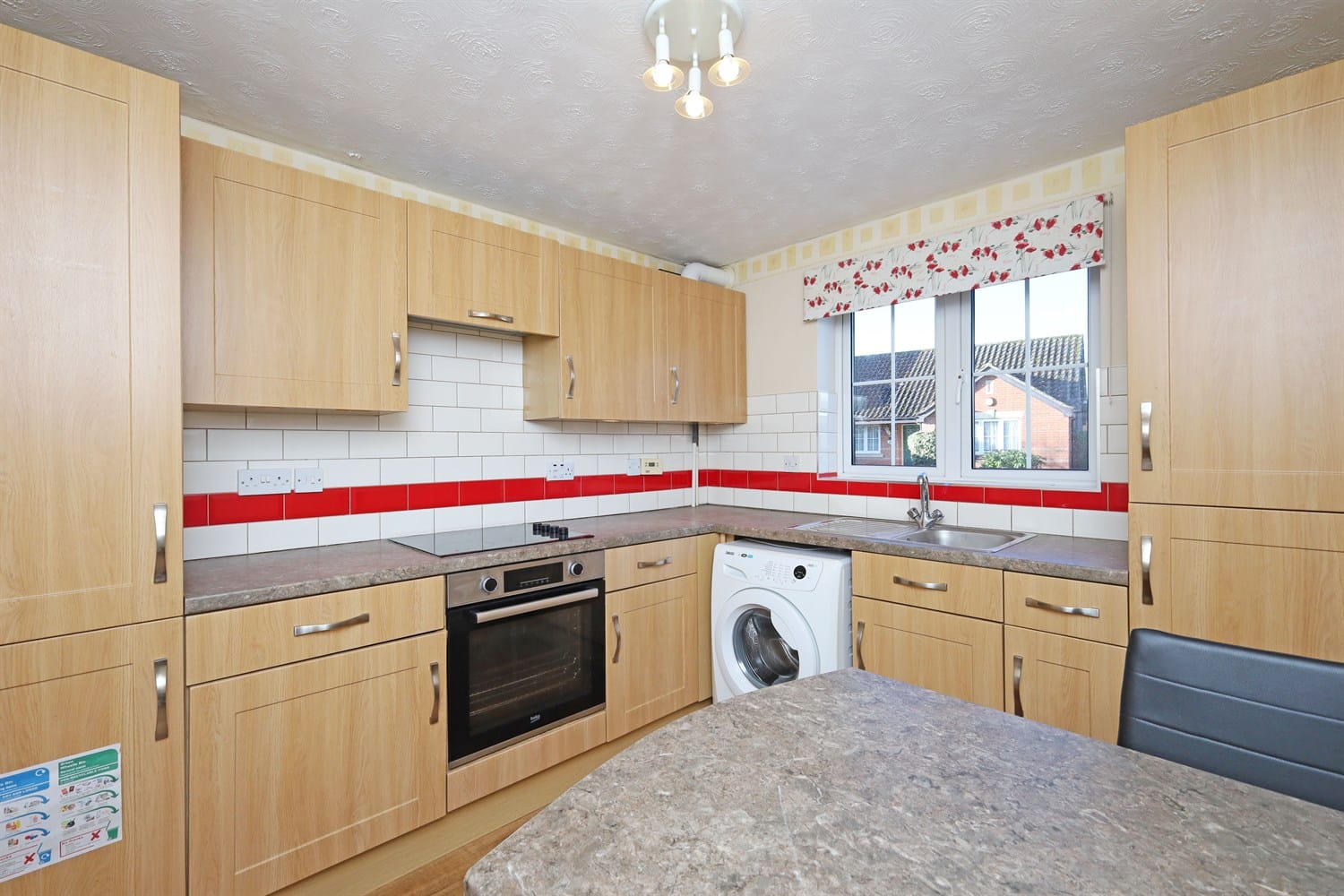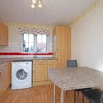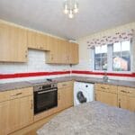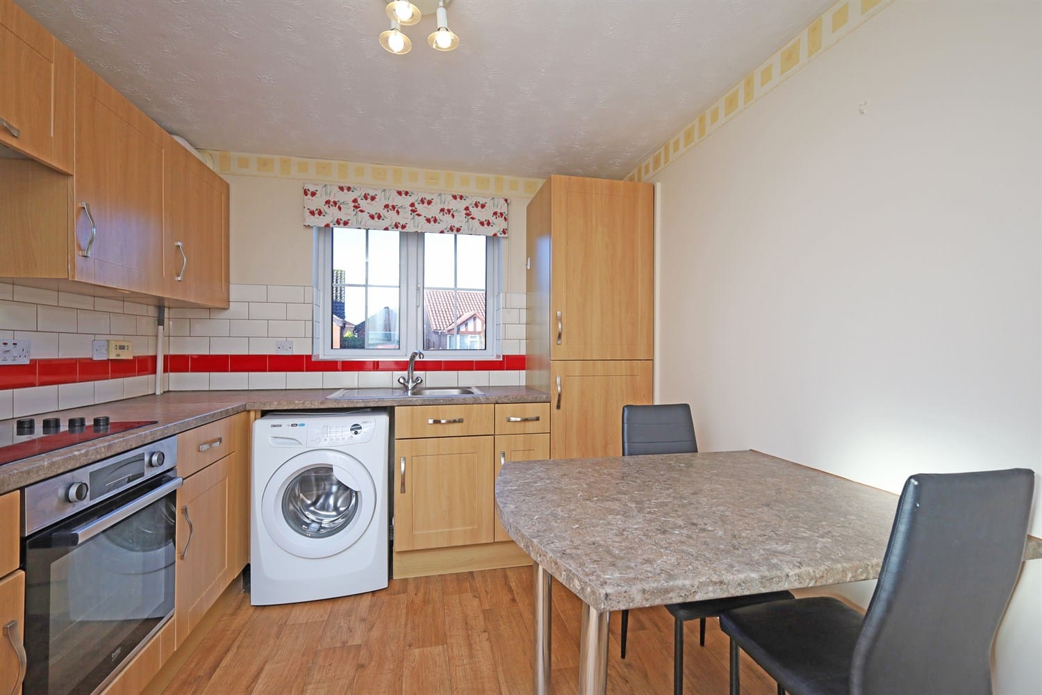 Lovely kitchen with wooden units to the base level with a worktop over, also including a variety of built in cupboards and drawers, oven, integral fridge freezer and space for a washing machine. Along with a window to the front aspect, a double panelled radiator and a dining table.