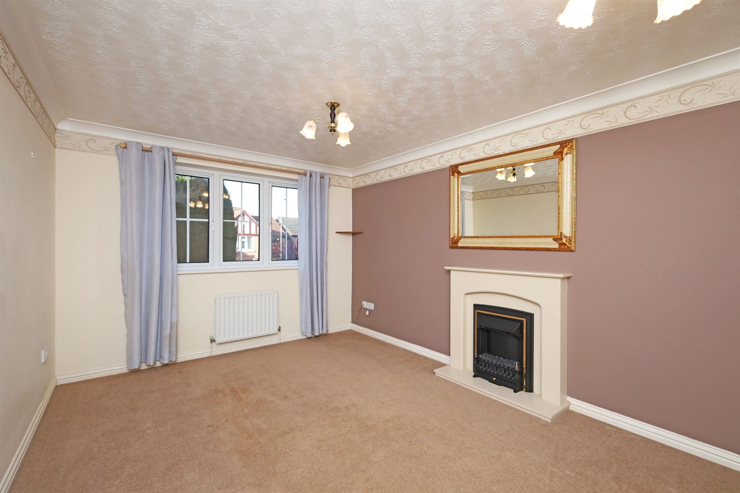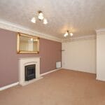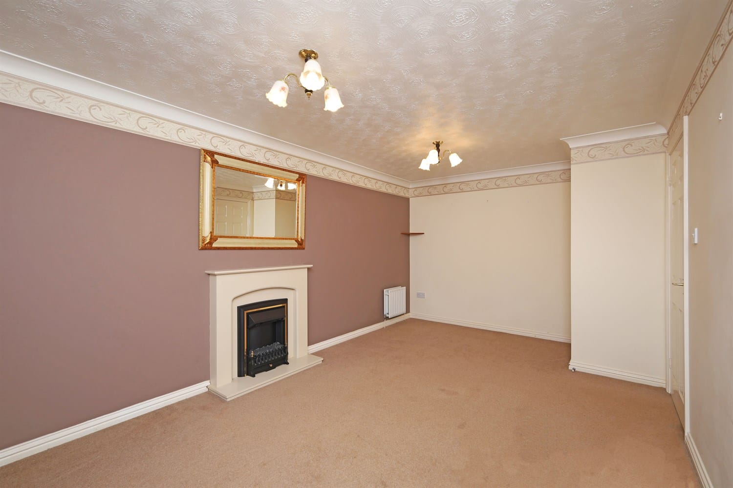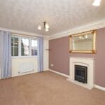 Spacious Livingroom featuring a window to the front aspect, which brings in lots of light. Along with a lovely fireplace, double panelled radiator and small corner shelves.