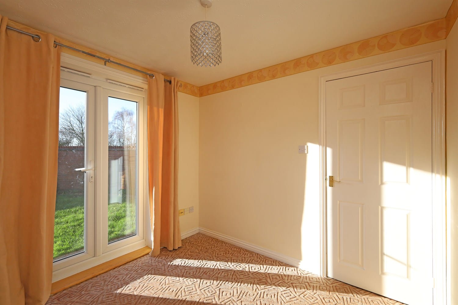 Bright bedroom with a window to the rear aspect, double panelled radiator and French doors into the rear garden.