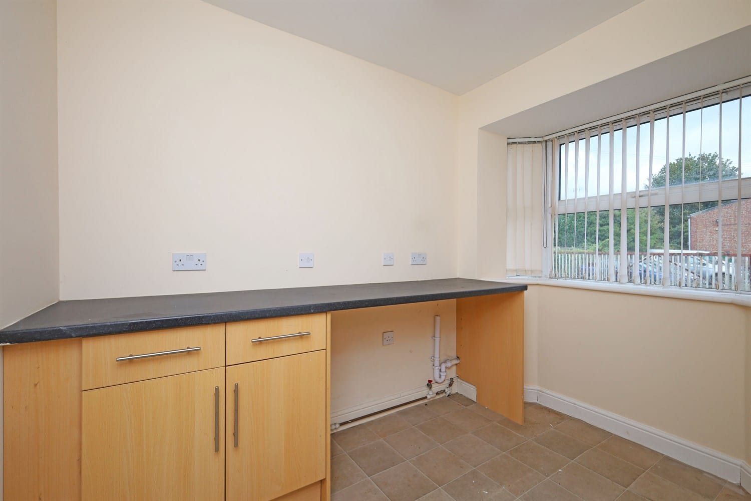 This utility room has cupboards for storage, space for washer / dryer and worktop space. It also features a bay window design to the front aspect and a double panelled radiator.