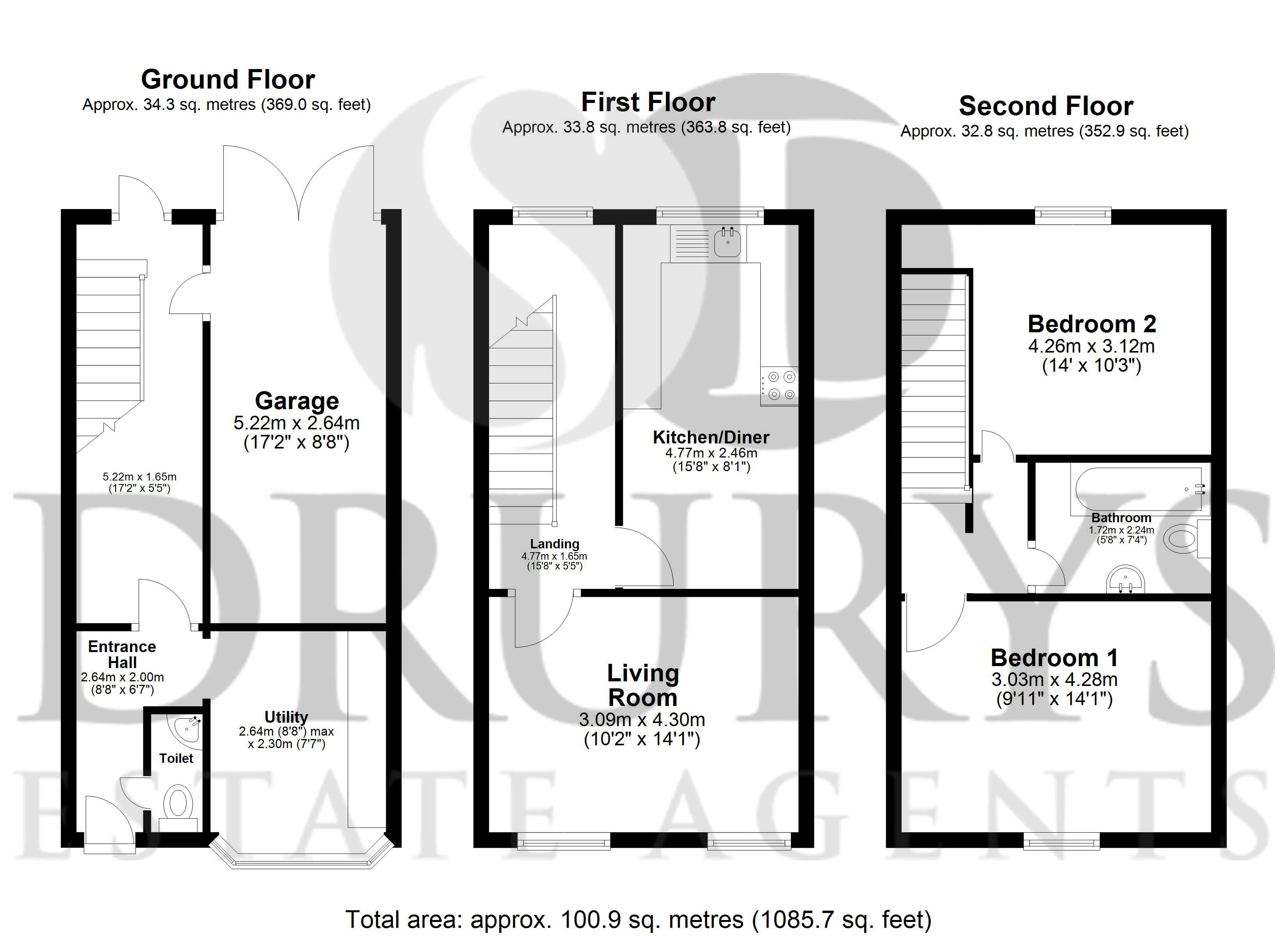 A great three storey two bedroom mid terrace house located in a highly sought-after area. Having accommodation comprising: entrance hall, toilet and utility to ground floor. Livingroom / lounge and kitchen diner to first floor, two bedrooms and bathroom to second floor.