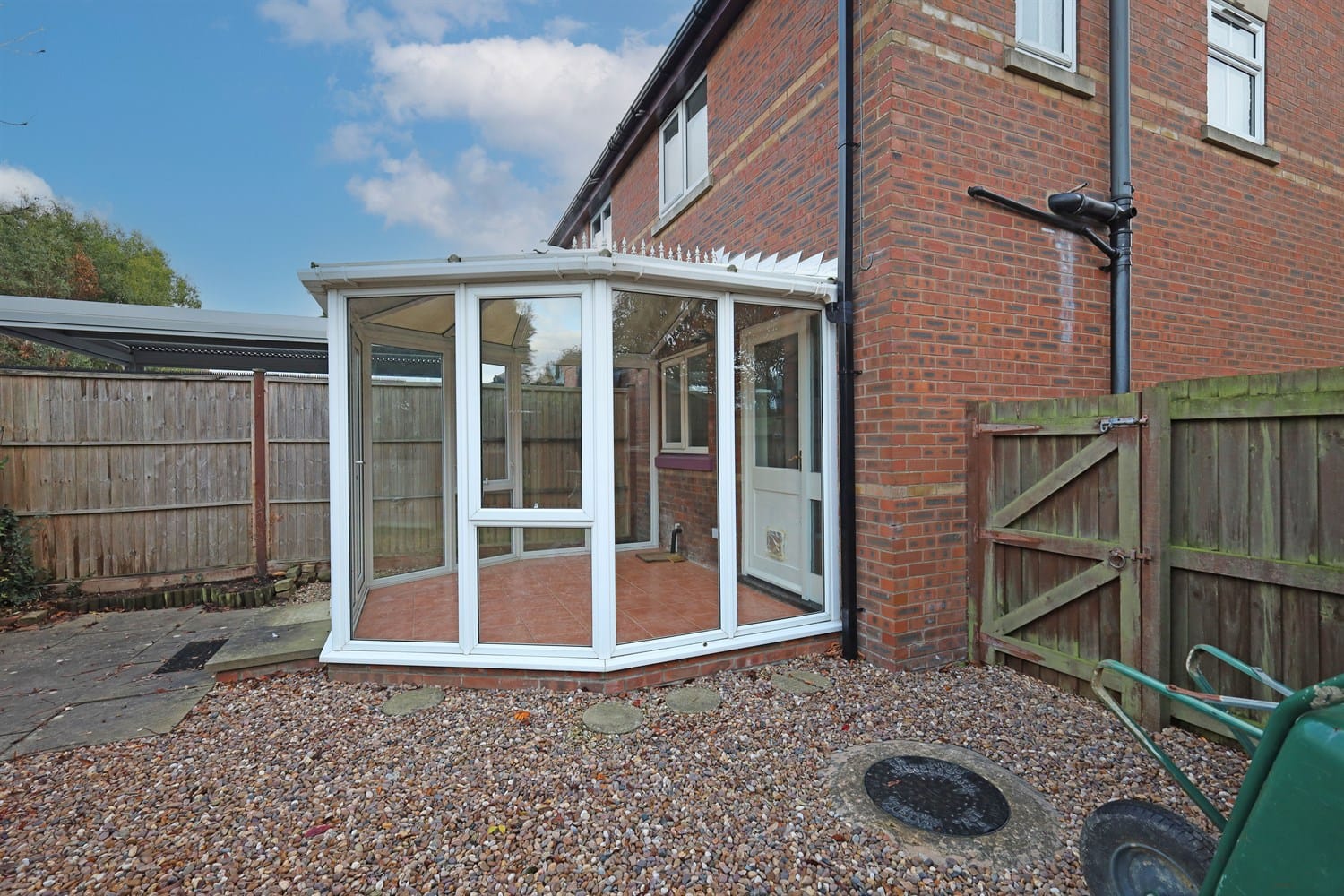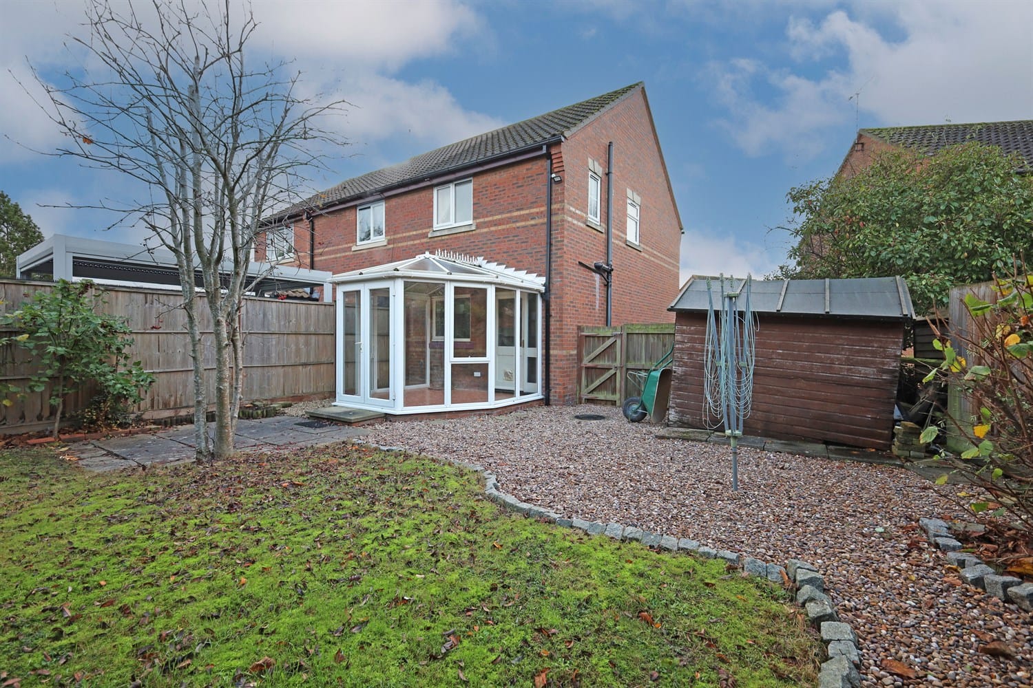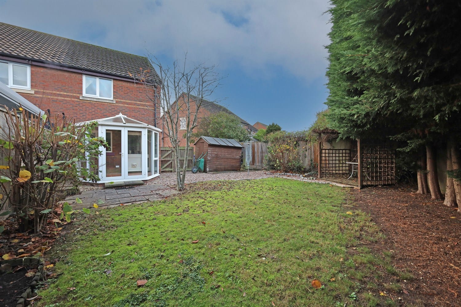 Having a lawn, fencing to all three sides and conifers for privacy to the rear(*please ask for details). There is a wooden gate leading out to the side of the property and to the driveway.