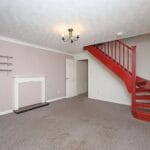 With uPVC window to the front aspect, radiator, powerpoints, tv point, decorative fireplace, staircase up to the first floor and doorway into the kitchen.