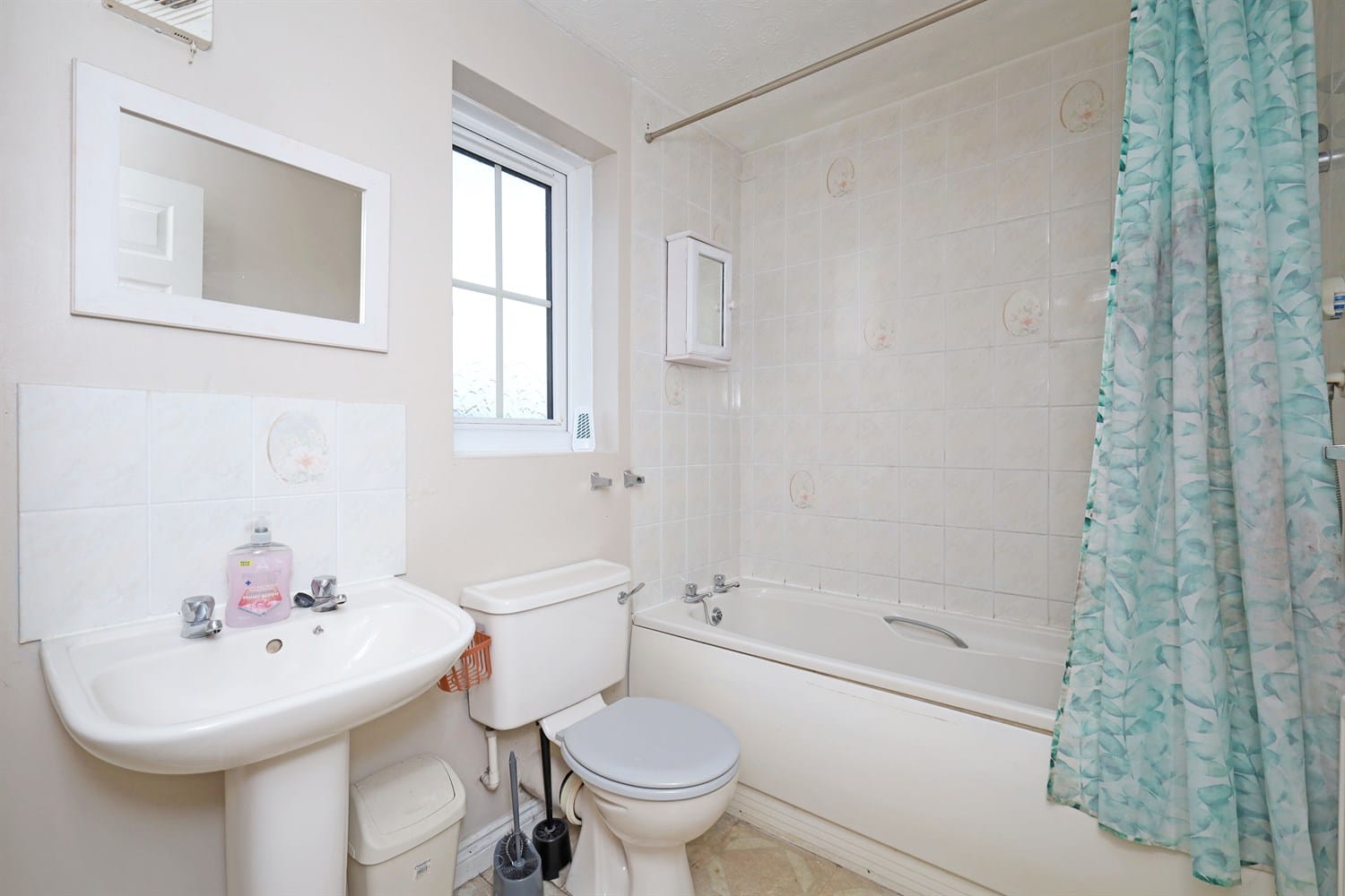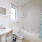 Having uPVC obscure-glazed window to the side aspect. The bathroom comprises a white suite of panel bath with mixer tap and shower over, pedestal hand basin and close coupled WC. Tiling as appropriate, radiator and extractor.