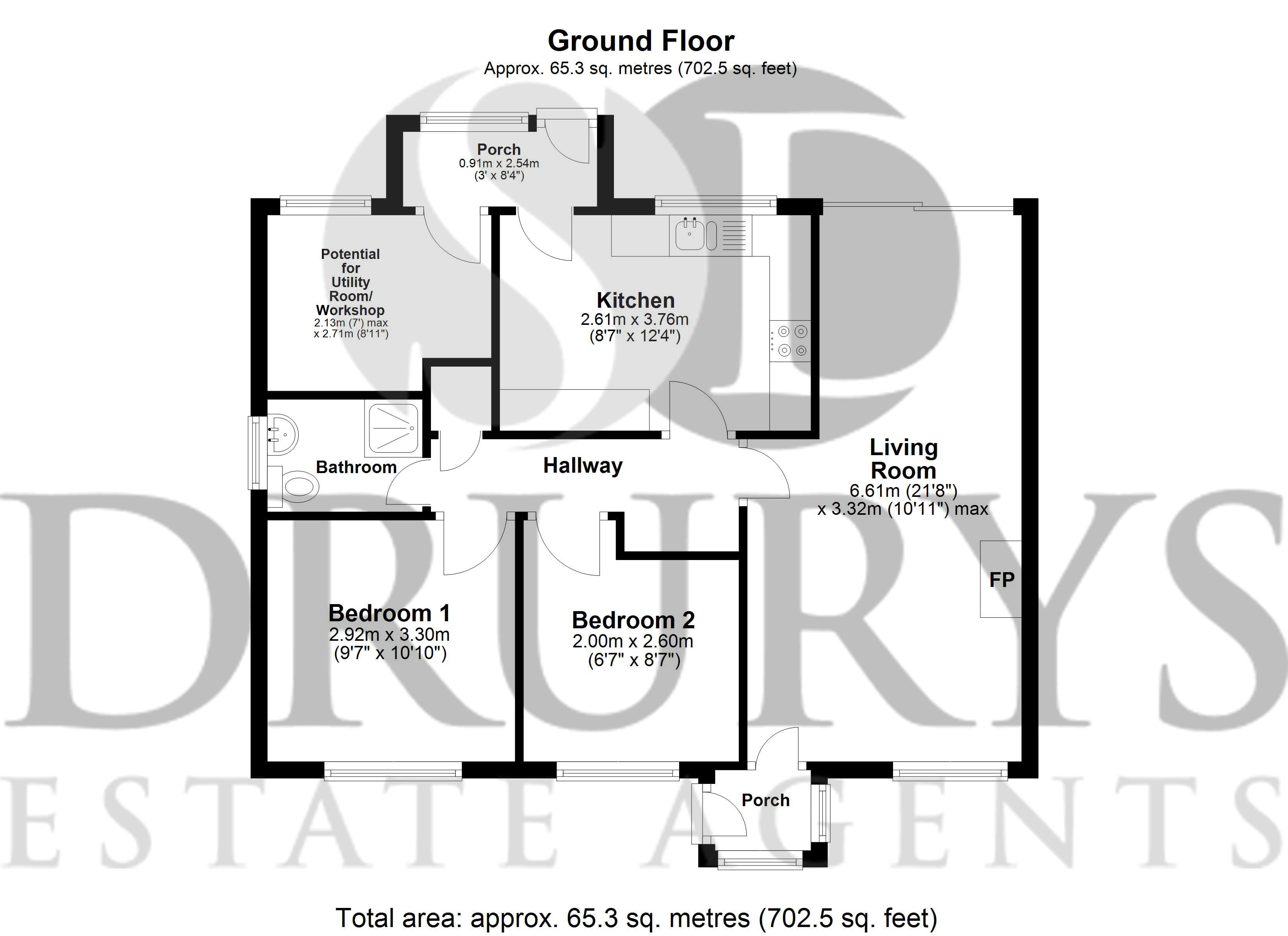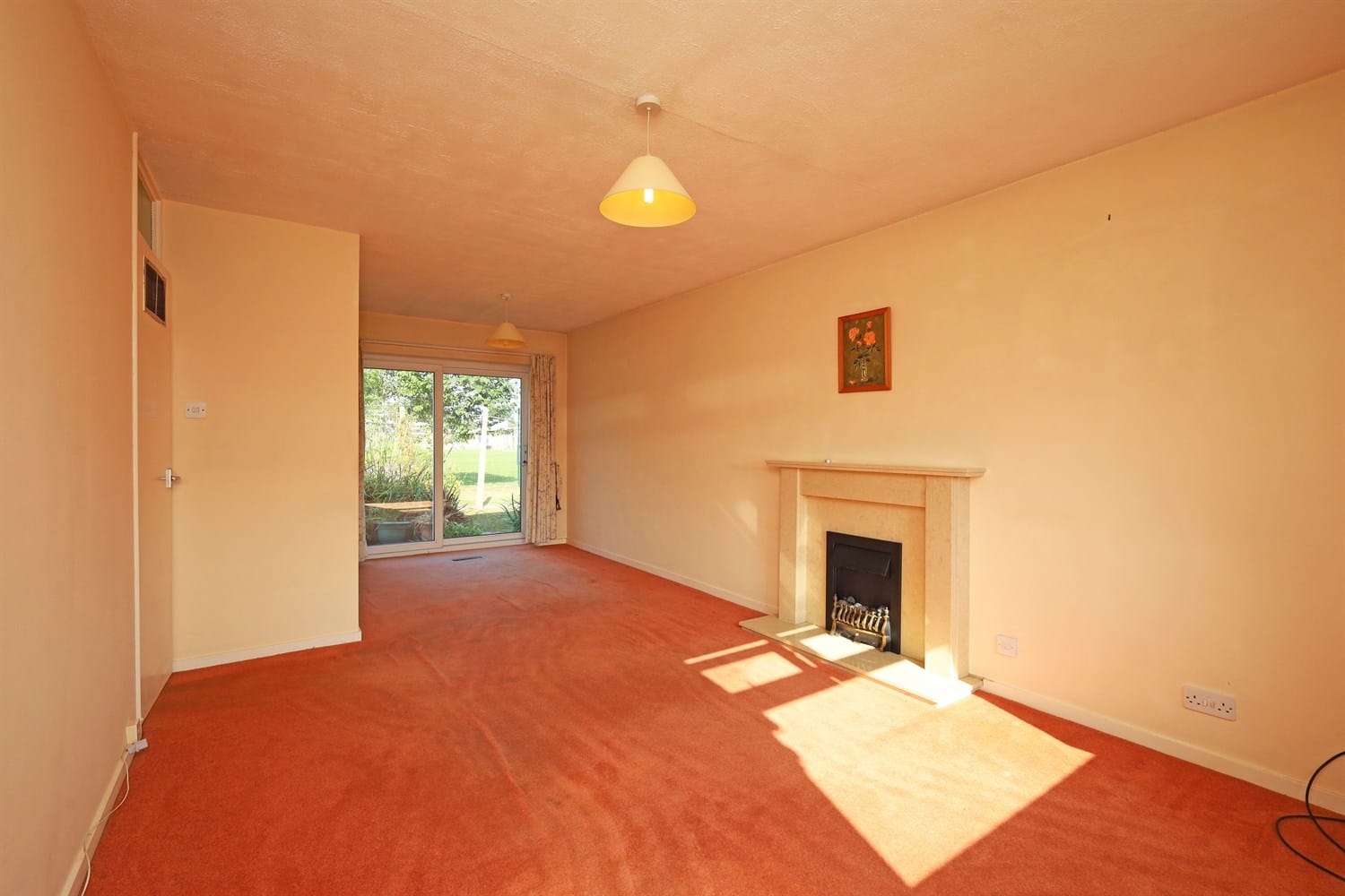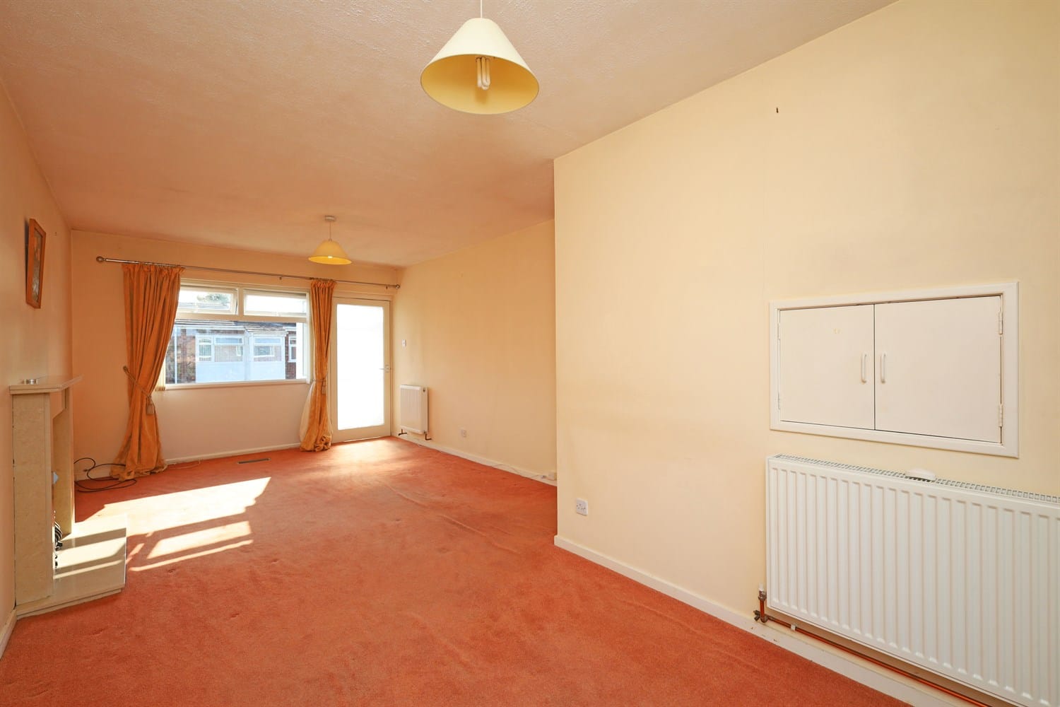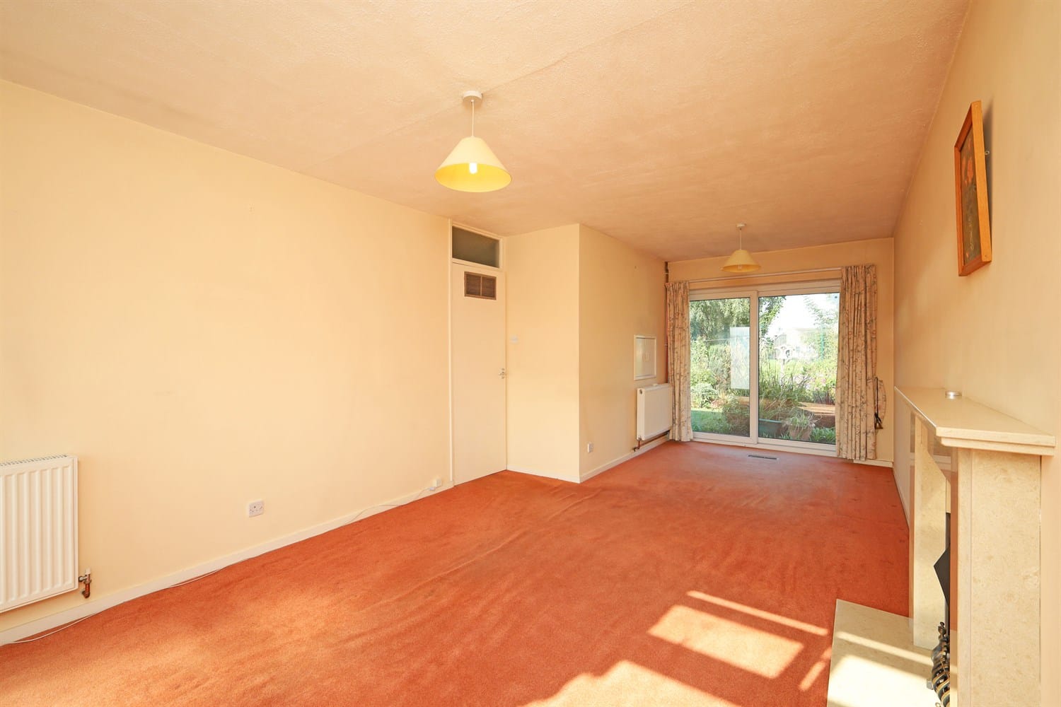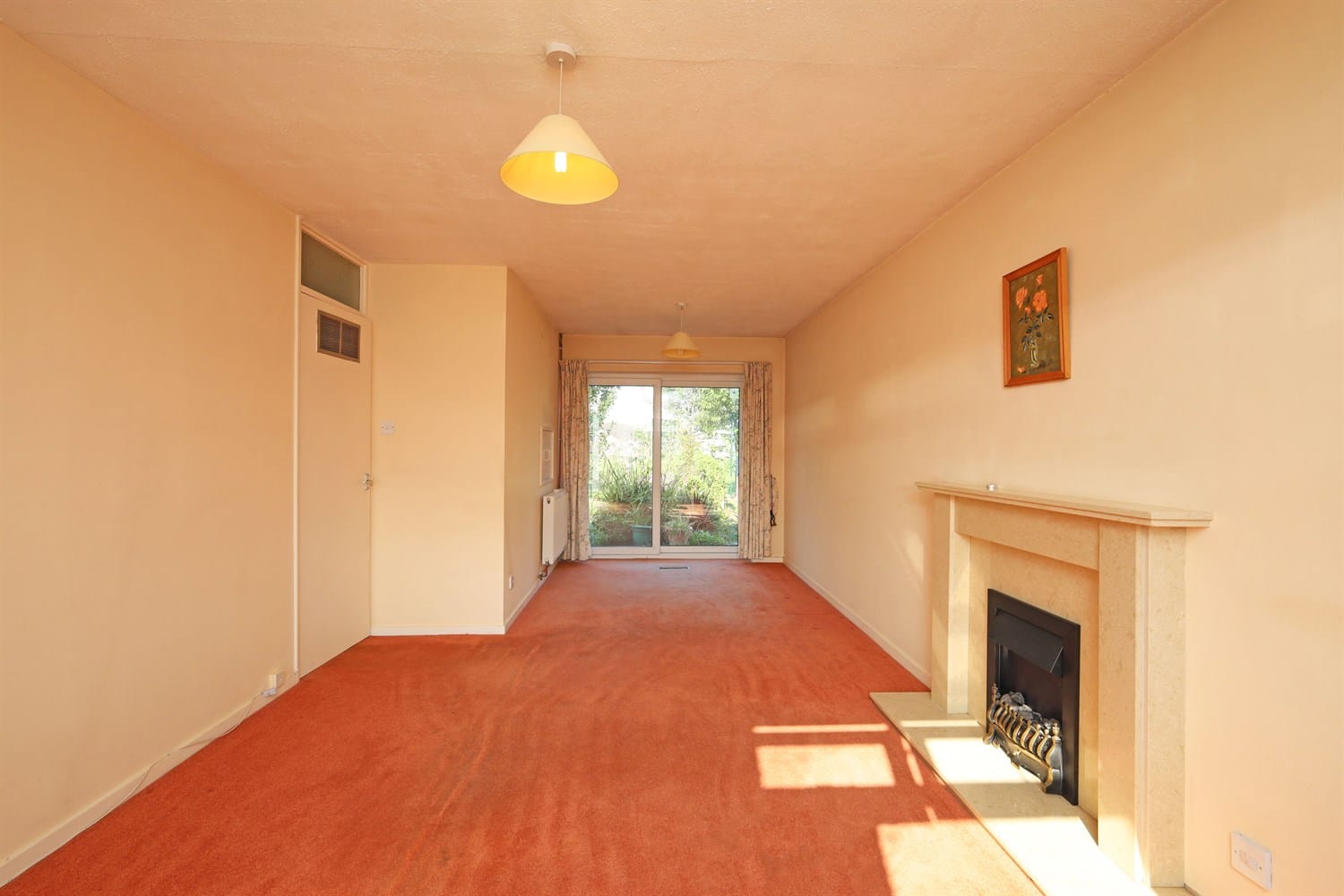 Entered through the front door, this lovely sized room has a window to the front aspect and French doors out into the garden. A radiator and Fireplace housing an electric fire.